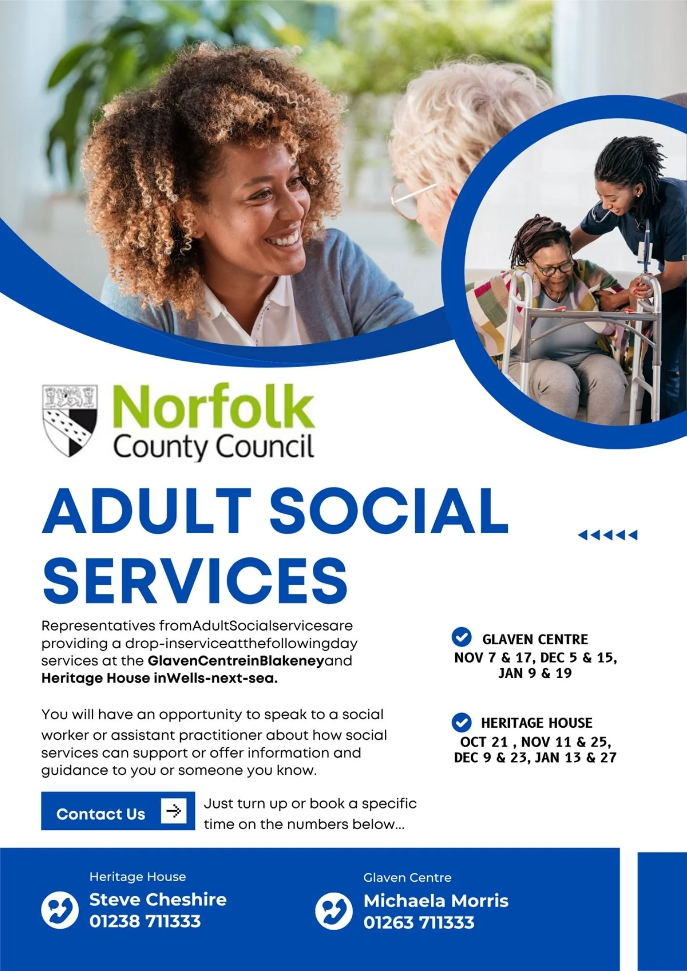 We are pleased to be able to help facilitate a drop-in service with NCC Adult Social Services. Please feel free to drop in or call to make an appointment.